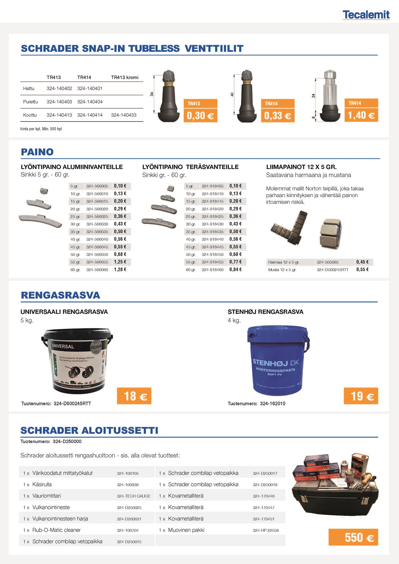 Rengaskoneen tilaajalle veloituksetta 500 kpl TR413-tubeless venttiileitä (arvo 150 €) ja tasapainotuskoneen tilaajalle veloituksetta 100 + 100 kpl liimapainoja, harmaa & musta (arvo 100 €).