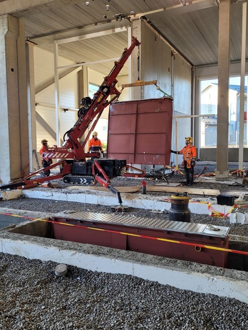 Keski-Pohjanmaan koulutuskuntayhtymä rakentaa Kokkolan ammattikampukselle uusia toimitiloja autoalan ammattilaisten koulutukseen. Rakentaminen on aloitettu kesällä 2022 ja uudet toimitilat valmistuvat keväällä 2023. Kohteen urakoitsijana toimii pietarsaarelainen Jake Rakennus Bygg Ab Oy. Tecalemit Oy valittiin toteuttamaan kohteen korjaamolaitekokonaisuus, johon kuuluu mm. AUTOPSTENHOJ Masterlift sylinterinostimet, AUTOPSTENHOJ Major 4-pilarisuuntausnostin sekä MAHA Connect testirata ja MAHA MLT 3000 valojensuuntauslaitteisto. Pakokaasunpoisto toteutetaan Nedermanin pakokaasukeloilla. Raskaalla puolella ajoneuvoja nostetaan Stertil-Konin akkukäyttöisellä nostopilarisarjalla. Ajoneuvot puhdistetaan CLEN-korkeapainepesuradoilla. Kuvassa on käynnissä AUTOPSTENHOJ Masterlift 2.35 sylinterinostimen kasettien asennus marraskuussa 2022. |